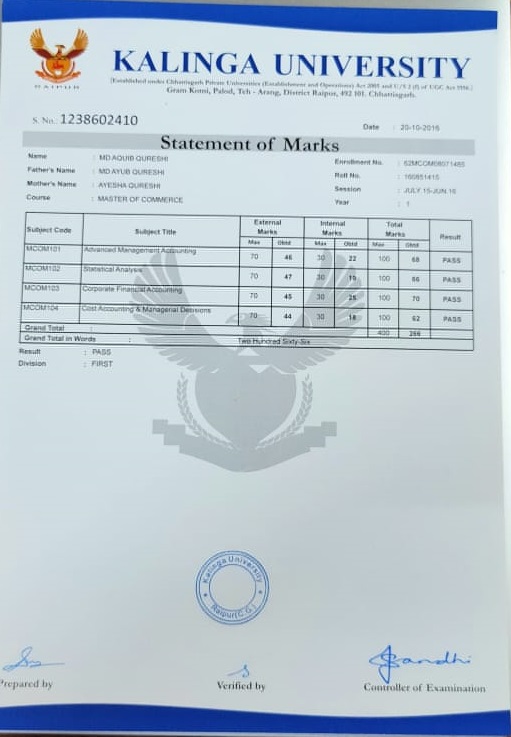 | Enrollment No | : 62MCOM08071485