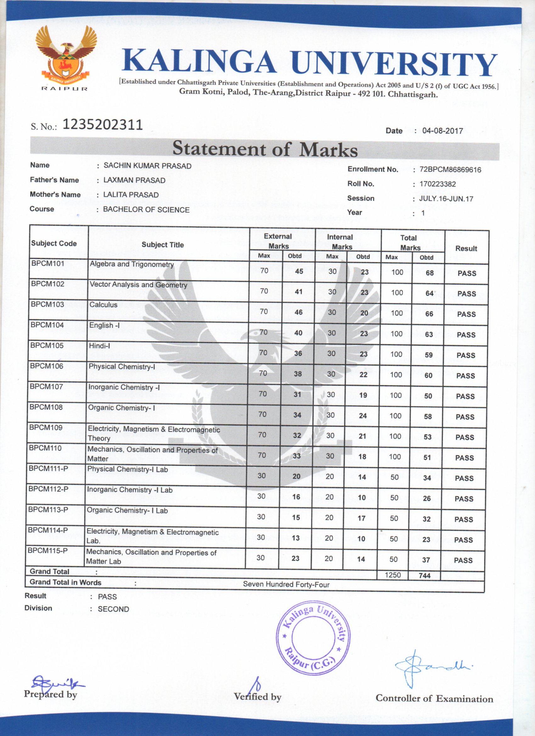 | Student Name | : SACHIN KUMAR PRASAD | | Father Name | : LAXMAN PRASAD | | Mother Name | : LALITA PRASAD | | DOB | : 18-01-1996 | | Address | : KRISHAK | | Email | : N/A | | Contact No | : 8400400335 |