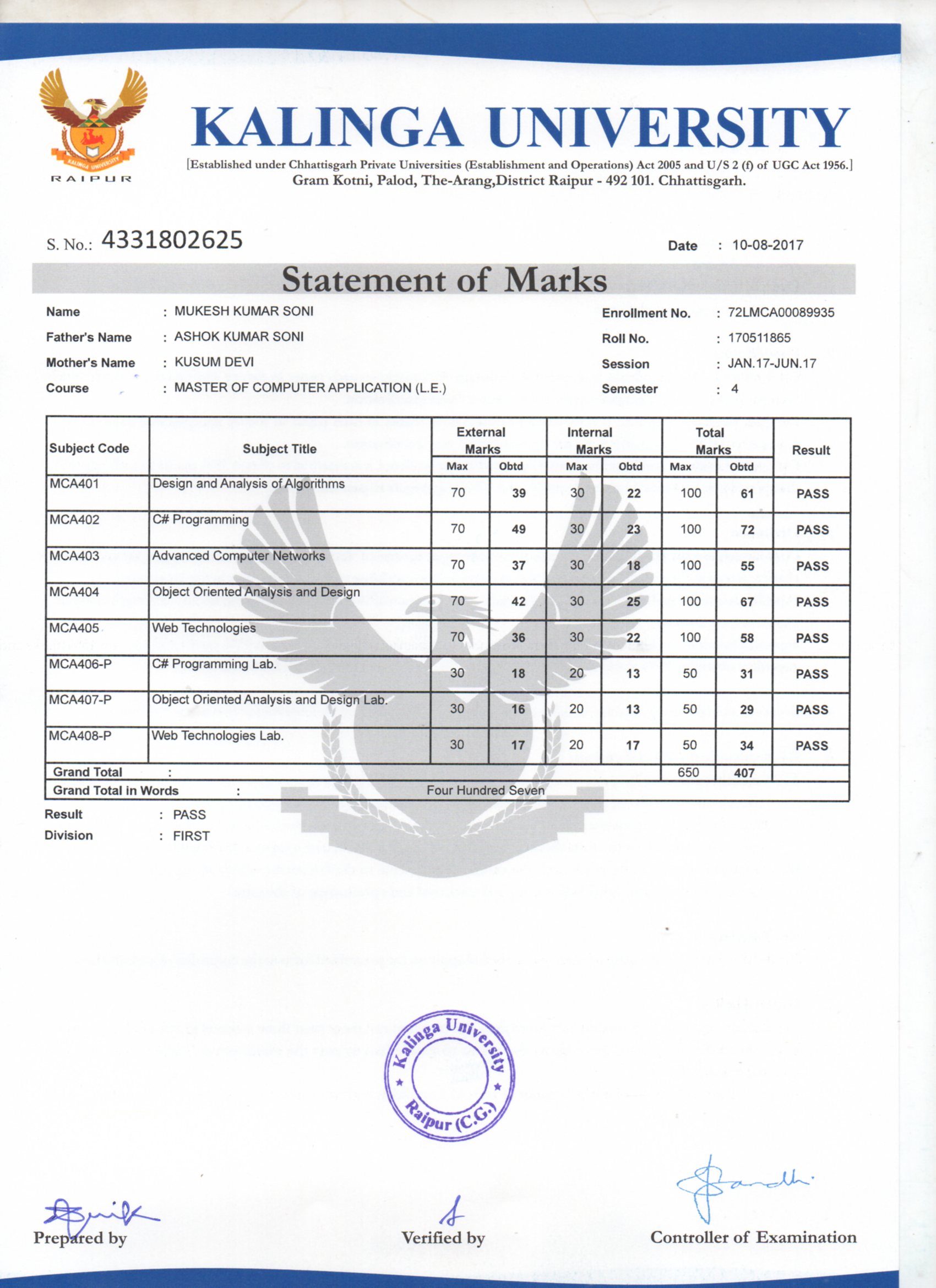| 4 | 266 | ms comp. nakhighat | 9450837178 | 5.3.2019 | mca 6th sem | View |