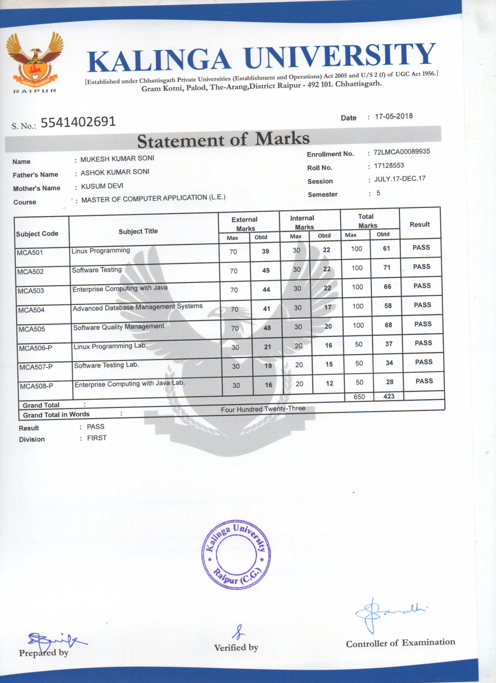 | 3 | 265 | ms comp. nakhighat | 9450837178 | 5.3.2019 | mca 5th sem | View |