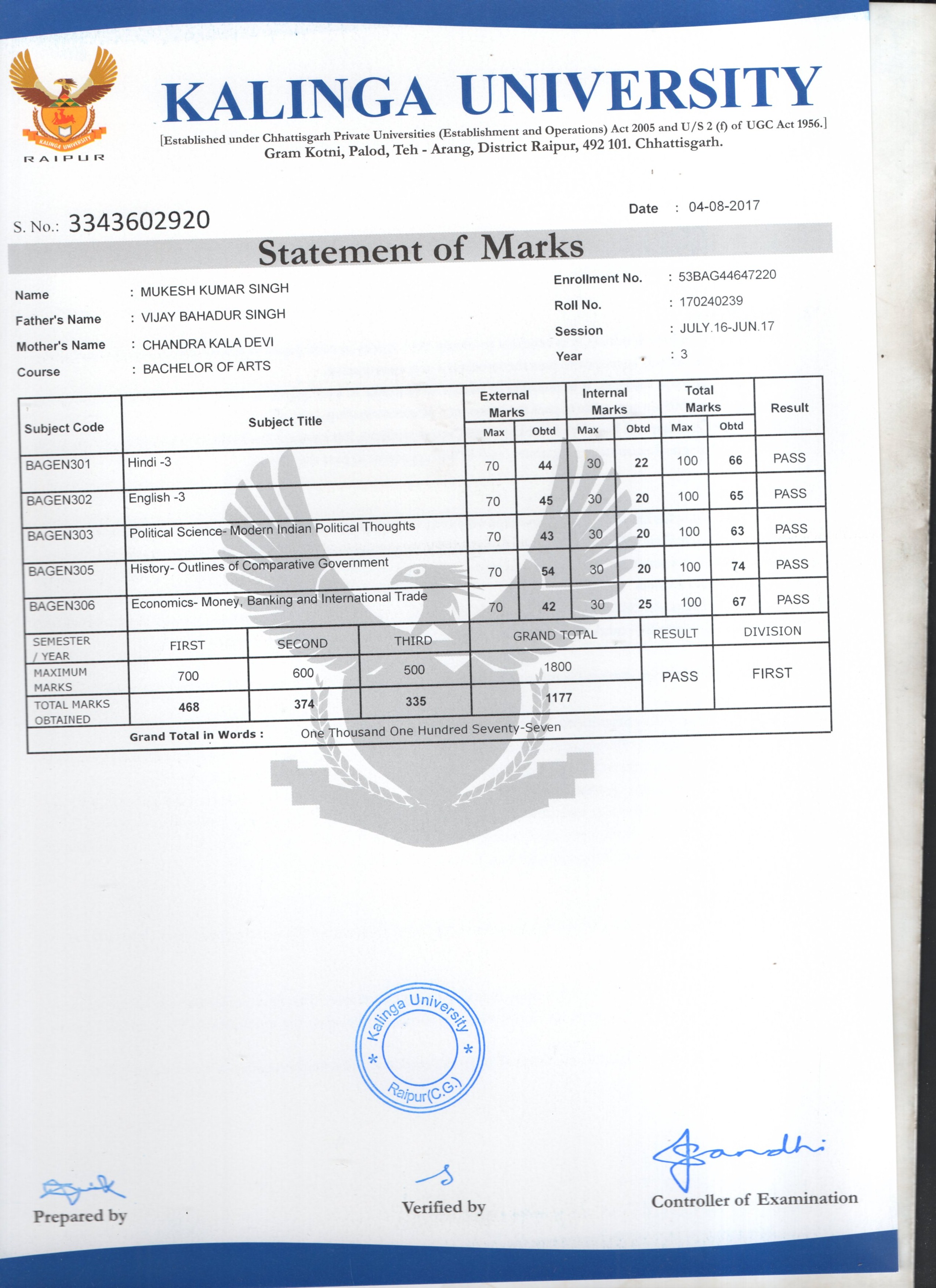 | | Certificate | : KU | | Course | : BAGEN | | Duration | : 3 Year | | Admission Date | : 14-12-2019 | | Total Fees | : Rs. 37000 |